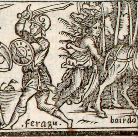 Combat de Renaud et de Ferragus, Angélique s'enfuit (Roland furieux, Zoppino 1530, ch.1) Voir la série