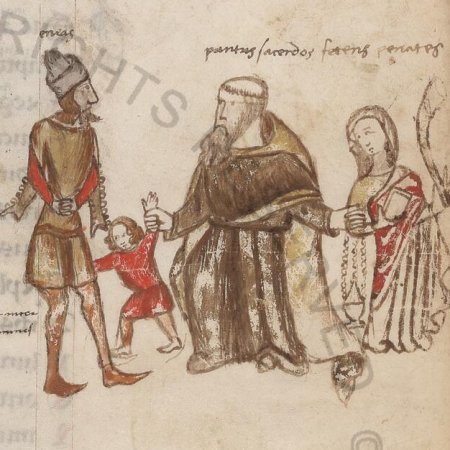 Panthus portant à Énée les Pénates de Troie (Énéide, Vatican, Vat.Lat.2761, f17r) Voir la série