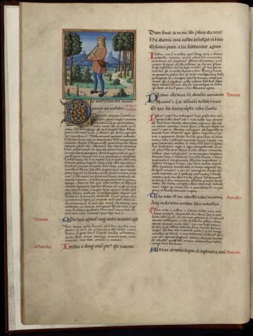 Corydon joue de la flûte pour Alexis (Virgilii opera, Dijon Ms 493, 2e églogue)