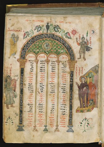 Canons d'Eusèbe. Bénédiction de la Vierge (Évangiles de Rabbula, fol 4r)