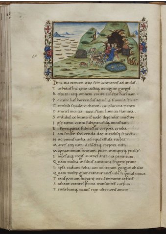 Sacrifice of Aeneas and the Sibyl at the entrance to the Avernus (Virgil, Aeneid, VI, Escurial RBME S-II-19, f127v)