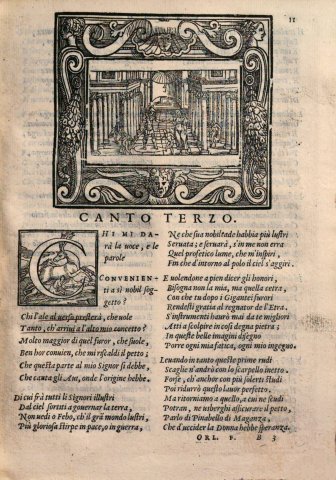 Melissa talks to Bradamante about her lineage (Orlando furioso, c3, Rampazetto, 1564).