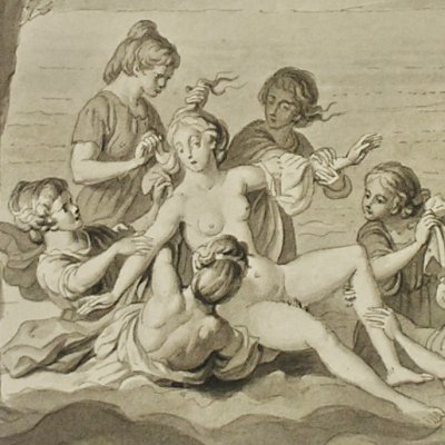 Légende sous le dessin : « Ces belles Ondines employerent ce qu’elles purent de plus consolant pour calmer sa douleur. »