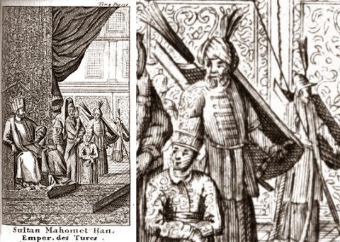 Il s’agit de Mehmed IV (1642-1693), surnommé Avci, le chasseur, sultan de l’empire ottoman de 1648 à 1687. Fils d’Ibrahim Ier, il succéda à l’âge de 6 ans à son père renversé et exécuté en 1648. Son règne est marqué par le gouvernement des grands vizirs de la famille Köprülü.