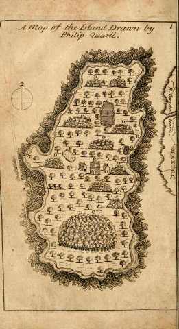 A map of the Island Drawn by Philip Quarll (The Hermit, Westminster, 1727)
