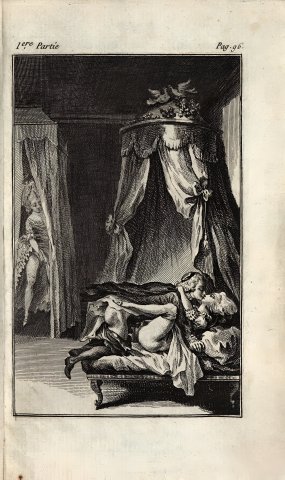 « Je devins machinalement le singe de ce que je voyois ; ma main faisoit l’office de celle de l’Abbé ; j’imitois tous les mouvemens de mon amie. Ah ! je me meurs, s’écria-t’elle tout-à-coup : enfonce-le, mon cher Abbé : oui… bien avant, je t’en conjure ; pousse fort, pousse, mon petit ! ah ! quel plaisir ! je fonds… je… me… pâ… me !