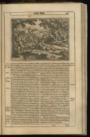 David combat Goliath (Gottfried, Hist. Chronica, 1674) - Merian