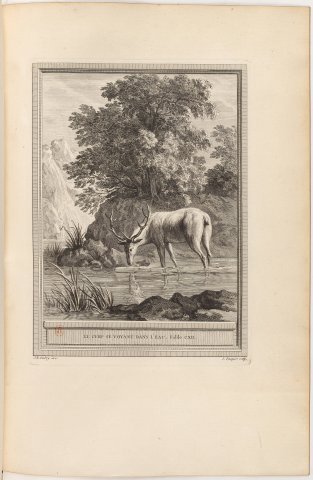 Le cerf se voyant dans l’eau (La Fontaine, Desaint et Saillant, 1755) - Oudry