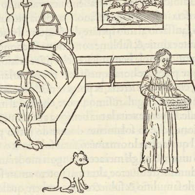 Polia lit la 3e lettre de Poliphile (Hypnerotomachia 1499, p. 446)