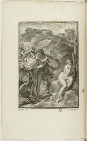 2. Gravure reprise de l’édition Baskerville/Molini, Birmingham et Paris, 1773, où elle portait le titre suivant : Lo corse ad abbracciare, e a fargli festa, / Trattasi la celata ch’avea in testa.