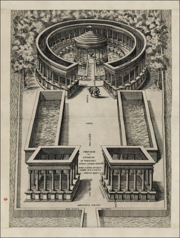 1. Légende, signature et date à l'entée de la volière : « ORNITHON | Sive | AVIARIVM | PYRRO • LIGORIO • NEAP • INV | ROME • CLAVDII • DVCHETI | FORMIS • M • D • L • XXXI | AMBROSIVS • BRAM • F • »