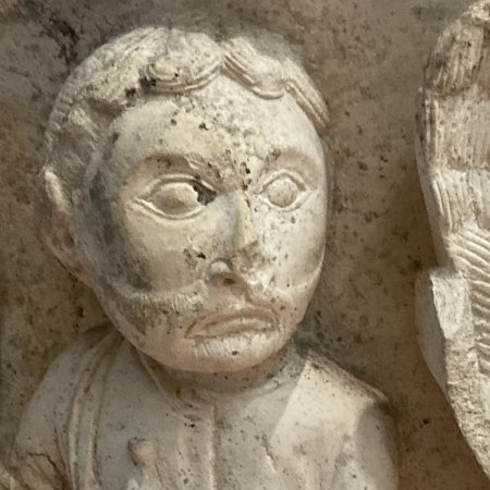 Chapiteau avec saint Jean évangéliste (Châlons, cloître de Notre-Dame en Vaux)