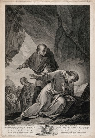 Saint Grégoire retiré dans une caverne (Cycle de Saint Grégoire) - Moles d'après Vanloo