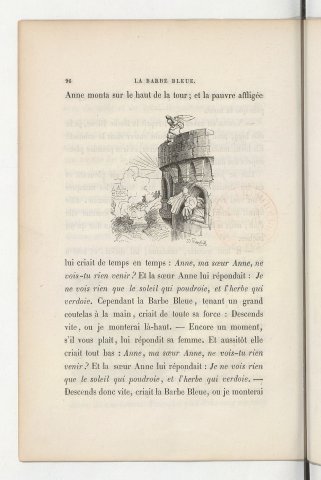 Barbe Bleue. « Ma sœur Anne, ne vois-tu rien venir ? » (Contes de Perrault, Blanchard, 1851) - Grandville