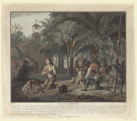 Prière de Paul au lieu de ses rendez-vous avec Virginie (Paul et Virginie) - Descourtis d'après Schall