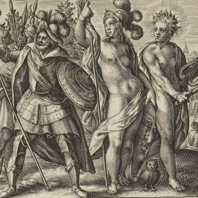 Minerve et Apollon poussent Hector au combat (Speculum heroicum, 1613, Iliade ch7) - C. de Passe