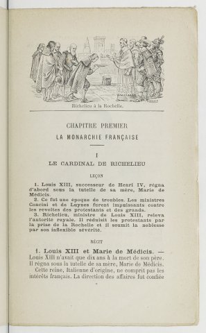 2. Chapitre I, La Monarchie française, I. Le cardinal de Richelieu, p. 7.