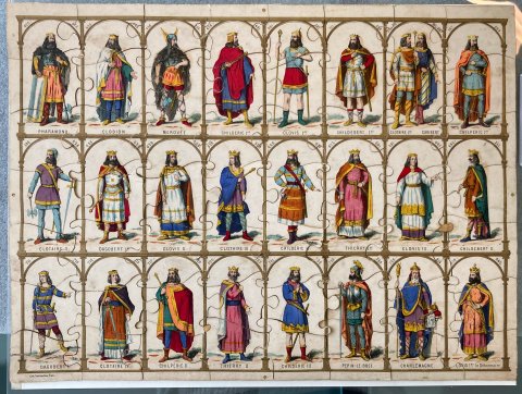 Premier de quatre puzzles, de Pharamond à Louis le Débonnaire. La galerie va jusqu'à Napoléon III.