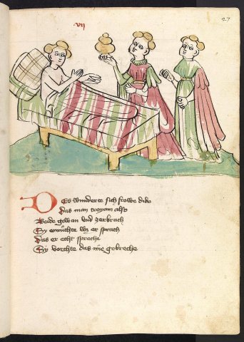 Didon malade d'amour (Hendrik von Veldeke, Heidelberg, Cod. Pal. germ. 403, f27r)