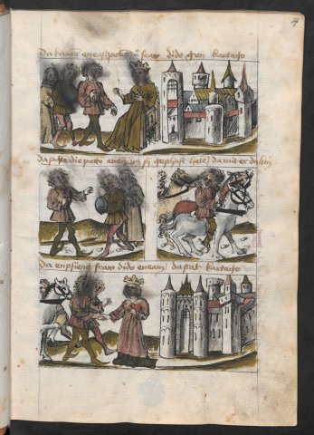 Didon accueille Énée à Carthage (Hendrik von Veldeke, Vienne, Cod. 2861 HAN MAG, F4r)