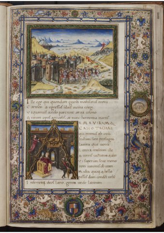 Cette première miniature de l'Énéide est inhabituelle et déconcertante : ce n'est ni la destruction de Troie, ni la tempête.