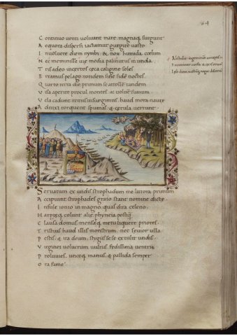Songe d'Énée. Les harpyes (Virgile, Énéide, III, Escurial RBME S-II-19, f84r)
