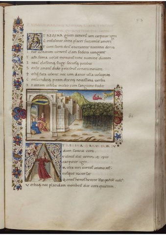 Didon confie sa passion à sa sœur (Virgile, Énéide, IV, Escurial RBME S-II-19, f93r)