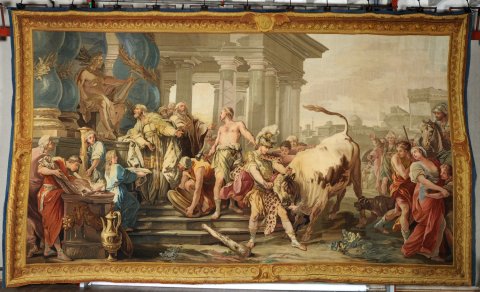 Thésée vainqueur du taureau de Marathon (Tenture de l'Histoire de Thésée) - d'après Vanloo