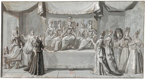 Tribunal des coquettes (Esquisse pour l'Almanach de 1689) - Nicolas Bonnart