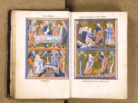 Sur la miniature inférieure, Noli me tangere, apparition du Christ à Marie-Madeleine.