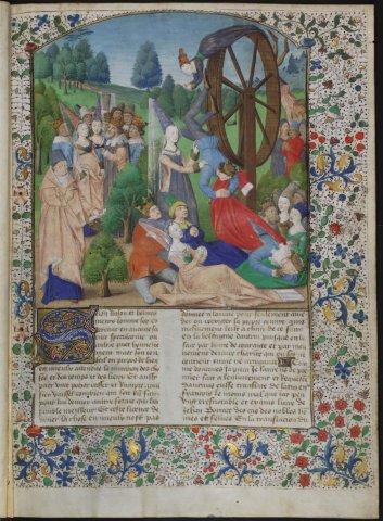 Prologue : Fortune et sa roue (Boccace, De casibus virorum illustrium, 1467, Hunter371, f.1r)