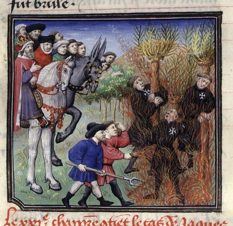 Supplice des Templiers (Boccace, De Casibus, Bnf Fr236, f.215v)