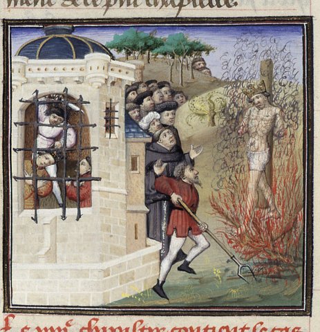 Crésus sauvé du bûcher par la pluie (Boccace, De Casibus, Bnf Fr235, f76v)