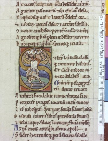 La chute de Palinure, S historié du livre 6 (Virgile, Bnf Latin 7936, f43r)