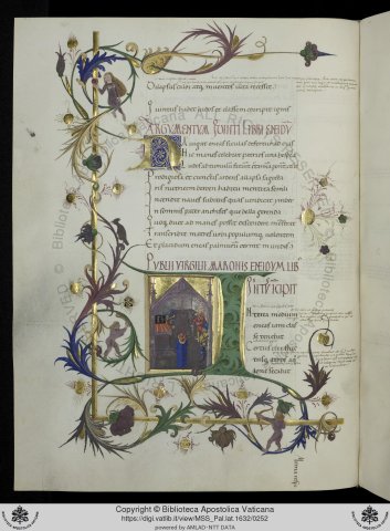 Énée au tombeau d'Anchise (Virgilii opera, Vatican, Pal.lat.1632, Énéide 5, f122v)