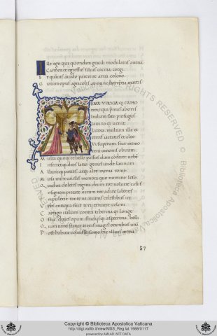 Didon accueille Énée et Achate (Vergilii opera, Vatican, Reg.Lat.1988, Énéide 1, f57r)