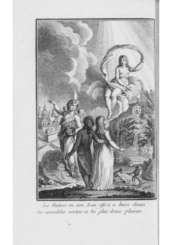 1. Légende sous l'image : « La Nature en son Sein offrit à leurs désirs | les aimables vertus et les plus doux plaisirs ».