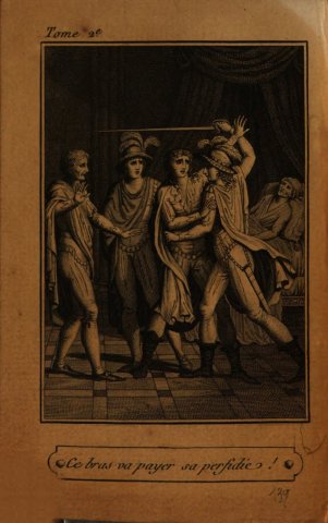 Sur limage, c'est lui qui menace le vieillard sur la gauche : il s'agit de Hubert, un domestique qui a révélé les forfaits de ses maîtres. Réginald est retenu par Albert et sire Bertrand, tandis que le père de Réginald, au fond à droite, faible et rongé par le remords, assiste à la scène impuisant.