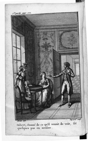 Légende : « Osbert, étonné de ce qu'il venait de voir, fit | quelques pas en arrière ».