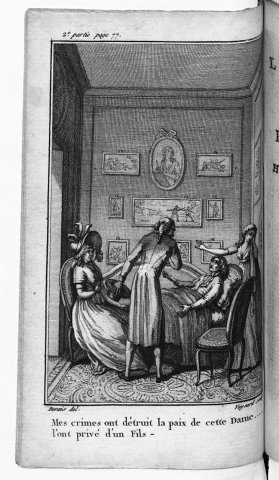Légende : « Mes crimes ont détruit la paix de cette Dame..... | l'ont privé d'un Fils – ».