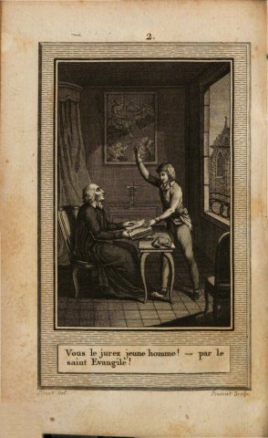 Légende : « Vous le jurez jeune homme ! – par le | saint Evangile ! ».