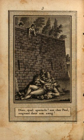 Légende : « Dieu, quel spectacle ! son cher Paul, | nageant dans son sang ! ».