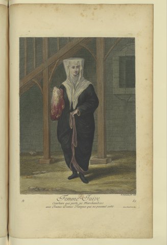 Légende sous les signatures : « Femme juive courtière qui porte ses marchandises aux Jeunes Dames Turques qui ne peuvent sortir. »