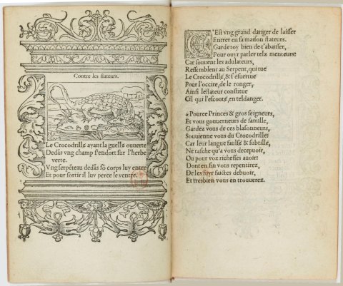 Contre les flatteurs. Le crocodile éventré (Hécatomgraphie, emblème 23)