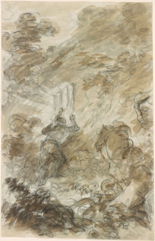 Pinabel est attiré par la lumière sortant de la grotte de Merlin (Dessins pour le Roland furieux) - Fragonard