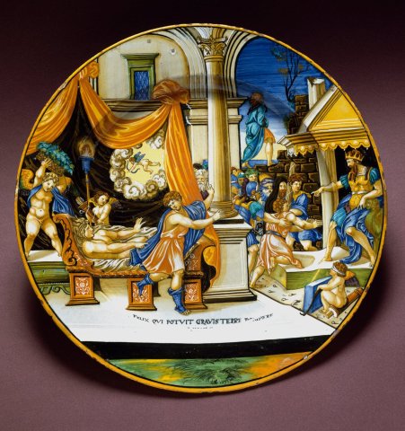 Plat en majolique avec Joseph et la femme de Putiphar (Urbino) - Avelli da Rovigo