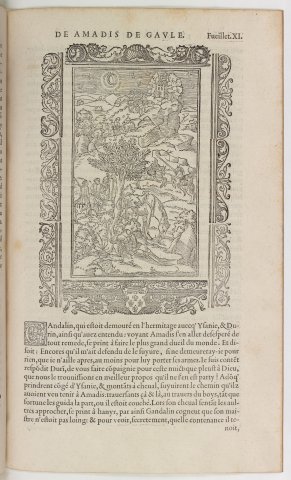 Gandalin et Durin retrouvent Amadis couché dans un bois (Amadis de Gaule, l2 ch4, éd. Longis, 1541)