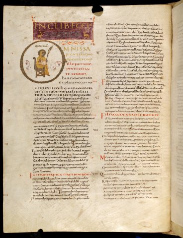 O historié avec la Sagesse siégeant. Ecclésiastique (Bible d'Alcuin à Bamberg, f260v)