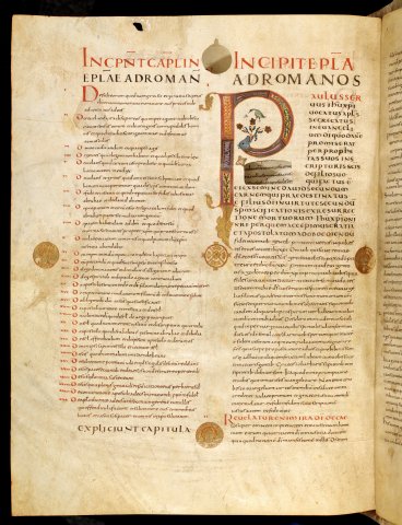 Titus, Timothée et Philippe. Lettre aux Romains (Bible d'Alcuin à Bamberg, f399v)