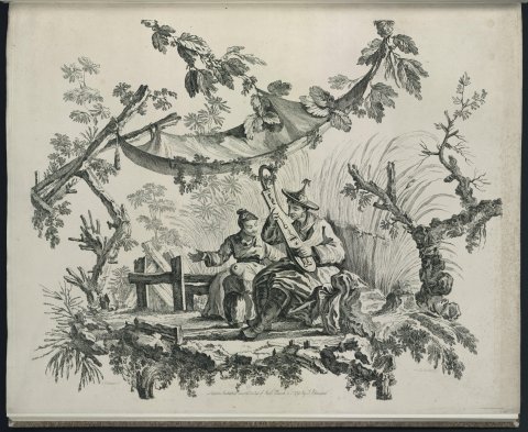 Un musicien, sa femme et leur enfant (Chinoiseries, scènes de la vie conjugale) - Pillement